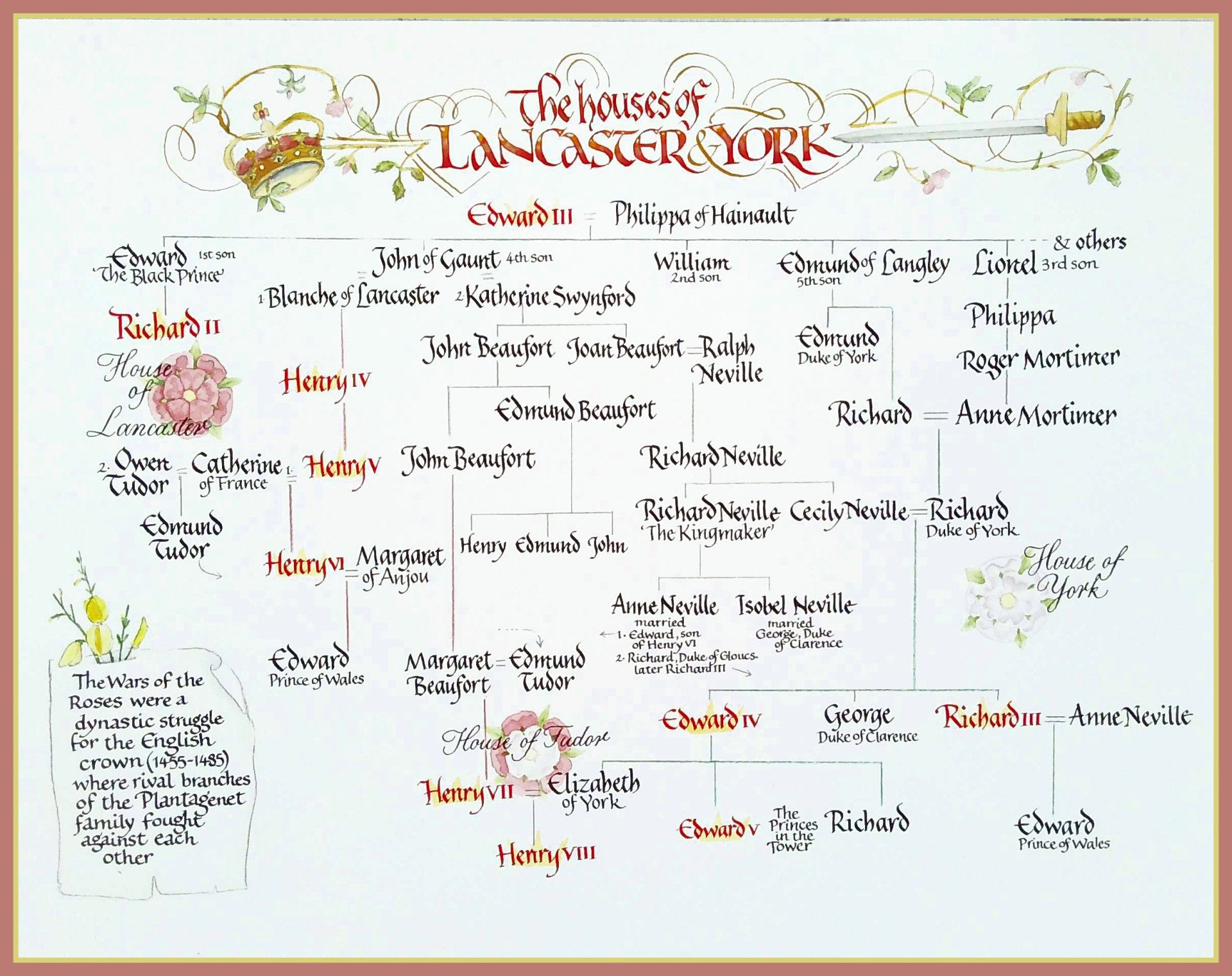 Family tree showing the relationships between warring sides in the War of the Roses - Barnet Museum